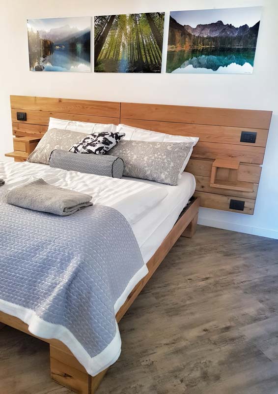 The bed is made with Acacia wood. A very common species in the area that during springtime smells amazing and exhibit the colors of surrounding nature. Bees love its flowers, and some edible types are used for delicious starters. In herbal therapy the Acacia is used as an anti-inflammatory.